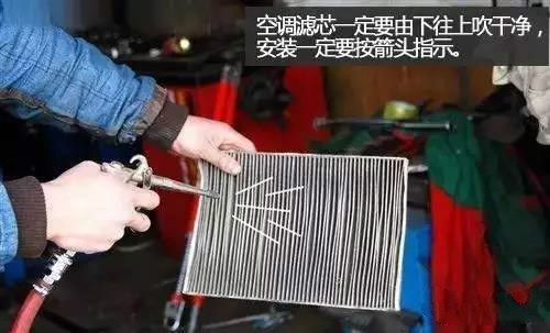 空滤使用一段时间后,通常都会积攒不少灰尘和脏污,如果太脏的话就扔了吧!如果空滤不是很脏的话,车主可以拿吹风机将空调滤芯由里往外吹干净。同时,安装的时候一定要按照箭头指示,不然空调滤芯不但起不来作用还会将灰尘吹到车内。