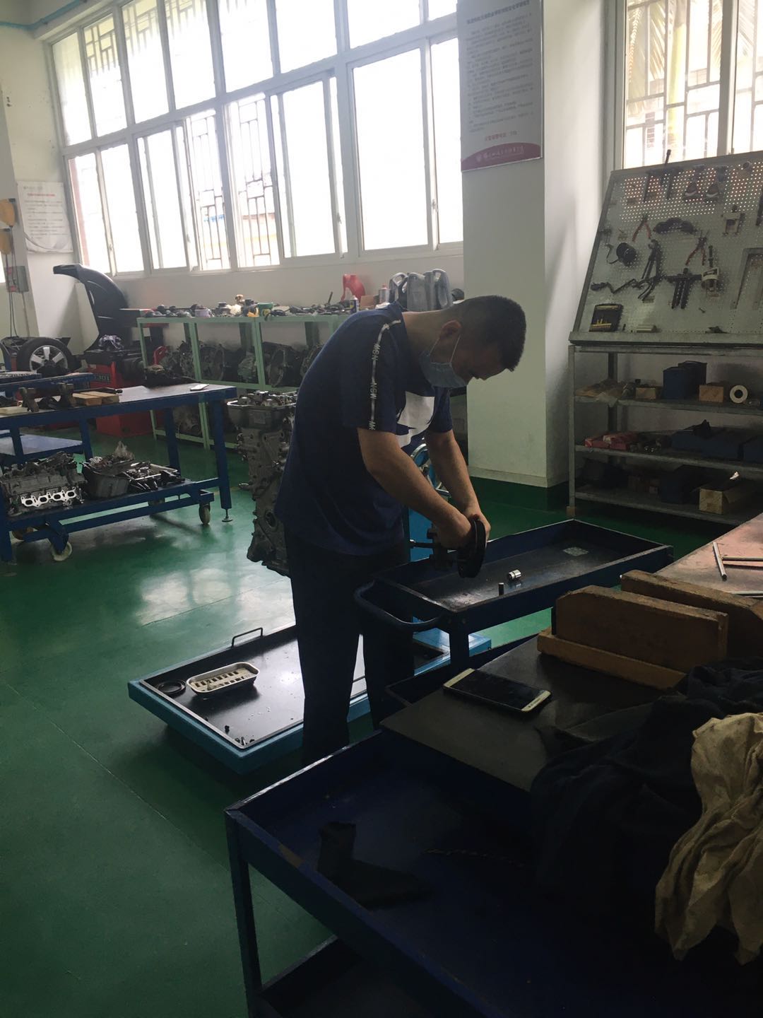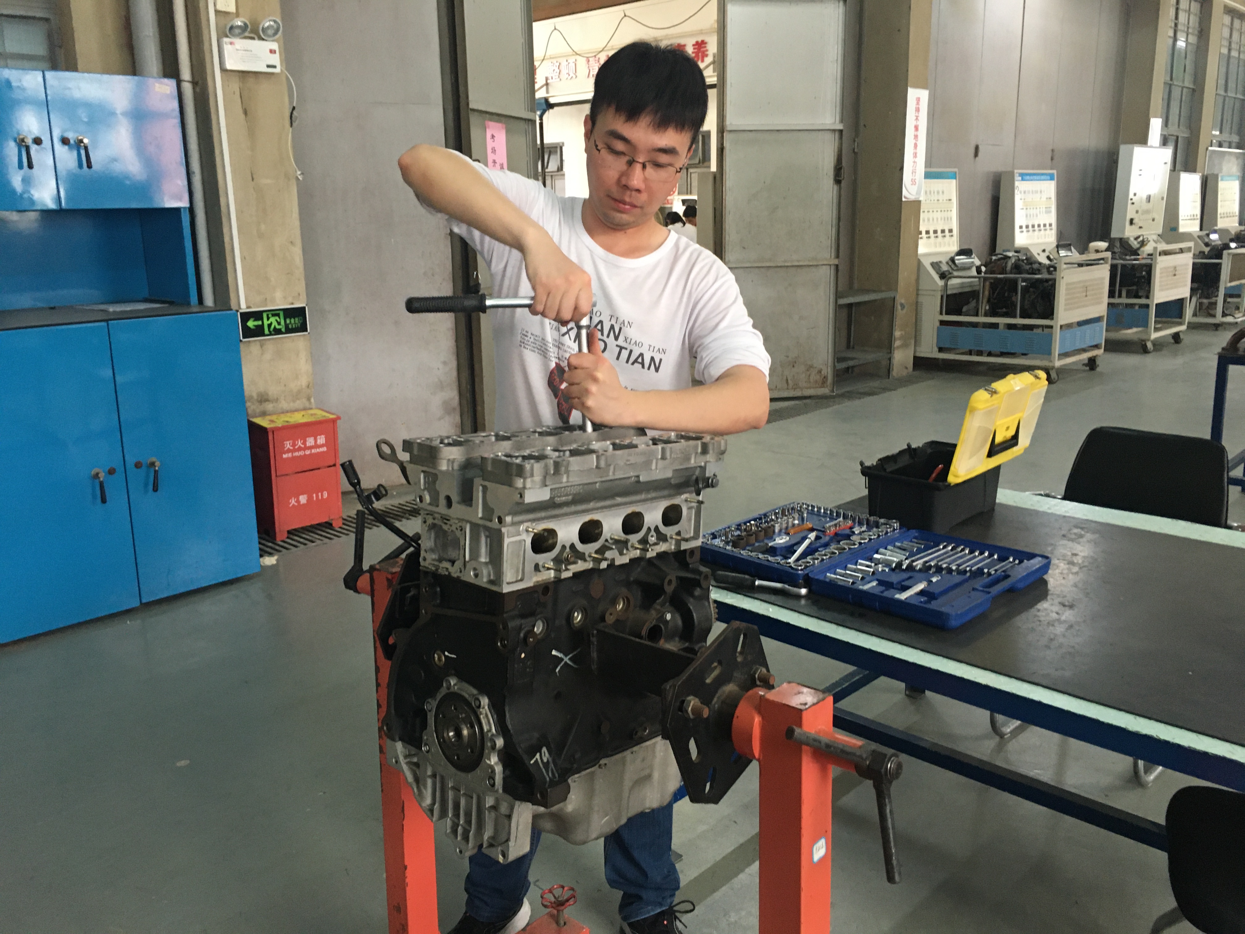 本次实操考试主要以汽车系实训中心为主,调动了全部的实训室资源,共安排6个不同的实训室进行了60个工位的布置。为了能切实保障每个考生都能发挥出理想水平,让每个考试项目达到“测试学生掌握有关基本技能的水平,以及综合运用知识、技能,解决实际问题的能力”的目的,汽车系实训室所有成员:黄知秋、许绍炎、黄林火、叶振球、柯晔伟、郑鹏、杜盼成、陈建钊、陈建华、陈星、陈炀、郑冰鑫等老师连日奋战,主动放弃了周末休息时间,积极投入到考场布置、监控安装、设备检修等考场准备工作中去,在短短几天时间内完成了拆解32台发动机,6辆整车的12套制动系统的任务,并严格按照要求完成了考场布置。