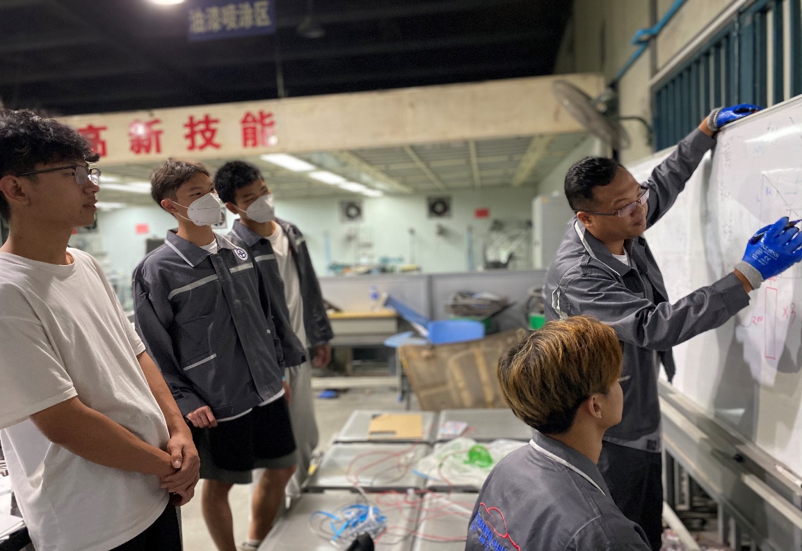 喷漆工艺有一定的创新,使用了幻彩珍珠漆,有提亮效果,看起来更有金属质感。从不同角度和光线下,机器人呈现的颜色是多姿多彩。机器人背部采用的是喷绘工艺,使学院的LOGO清晰度更高。本次展示的制作,陈星老师和项目组成员感触良多,虽然辛苦,但是在创作的过程中也积累了很多实践经验。项目组成员林鑫说,理论联系实操,看到自己参与制作的产品完美展现在自己面前的那一刻,很有成就感。