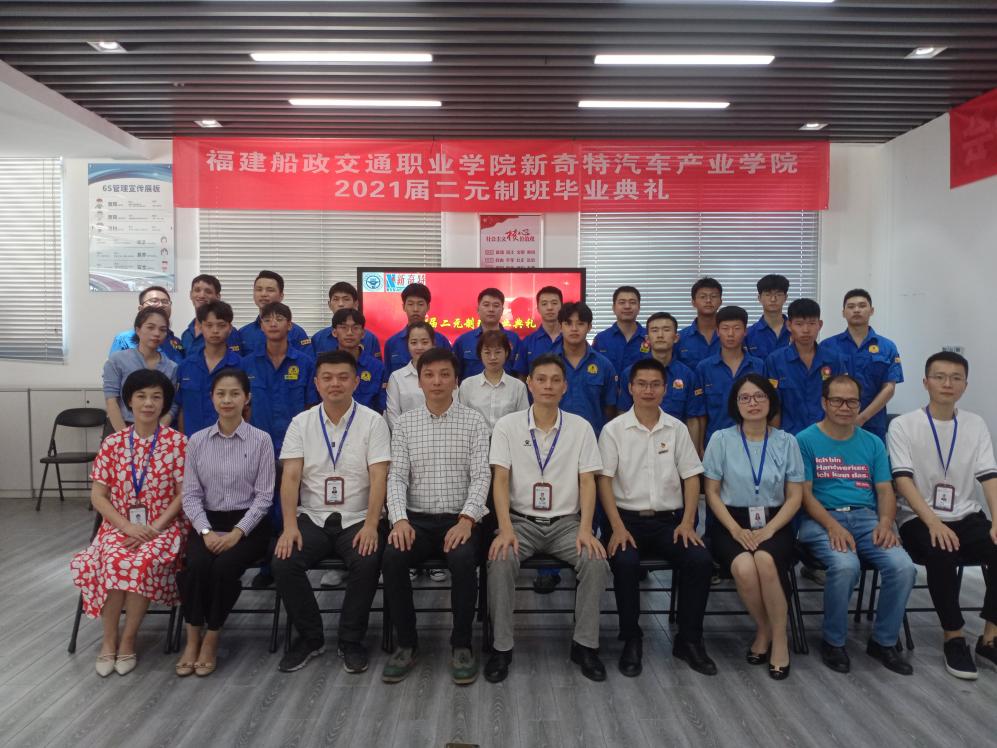 新奇特汽车产业学院是我院与新奇特车业服务股份有限公司于2018年起开展合作,双方积极探索混合所有制学院办学模式,开启“二元制”联合办学,达成了产学研的深度合作。三年来,校企合作硕果累累。目前“二元制”办学已成功举办三届,共培养汽车检测与维修技术专业和汽车营销与服务专业“二元制”学生130余人;双方共同合作开发了科研项目2项;集聚品质提升,助力福建新奇特车业服务股份有限公司获批福建省首批产教融合型企业。通过多形式、深层次紧密合作,进一步整合校企资源,深化产教融合,携手同行,不断书写高素质技术技能型人才培养新篇章。