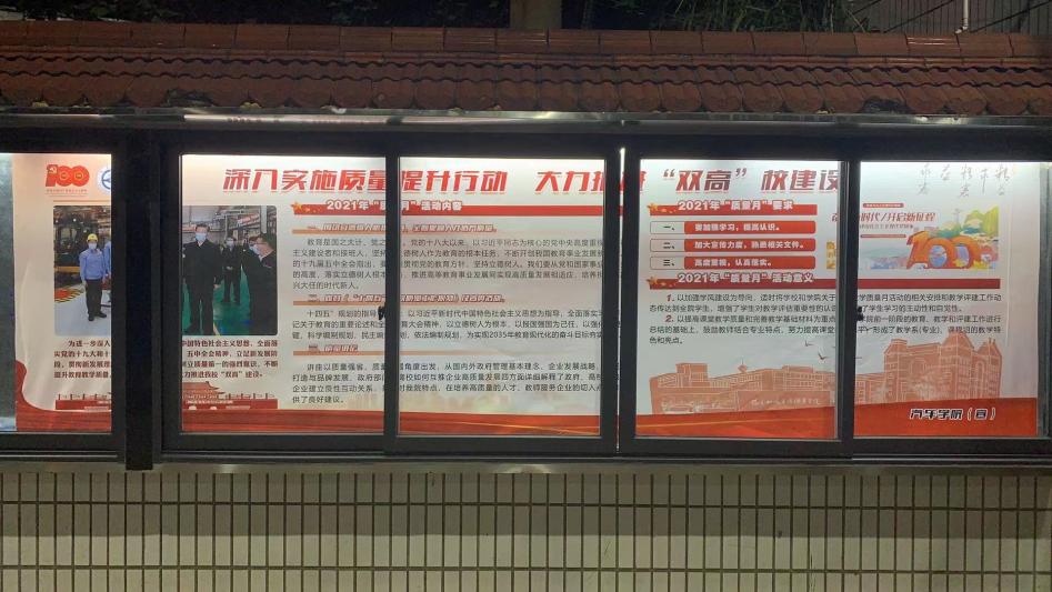 为确保本次活动能够圆满完成,达到预期活动效果,并将质量月活动持续有效地开展,我院成立质量月活动工作领导小组,负责制定活动方案,召开质量月活动筹备会,明确职责,加强对活动的组织与管理。我院结合庆祝中国共产党成立100周年,将“精益求精、密益求密”的质量理念与开展质量提升行动紧密相结合,充分利用宣传栏、学院官网和微信公众号等媒体手段进行宣传、报道,将“质量月”活动认真落实到位,让“质量月”有宣传、有举措、有成效。