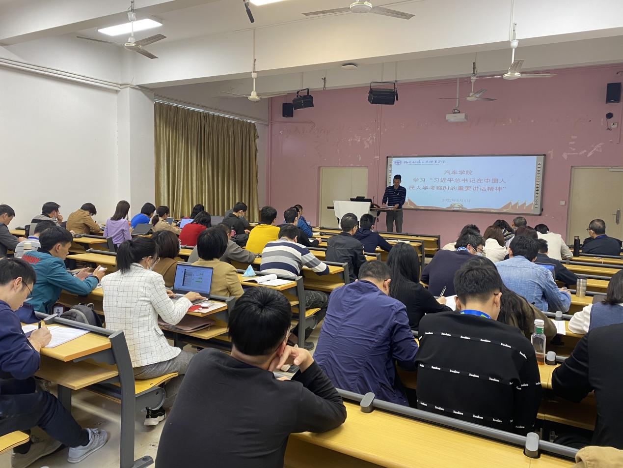 为进一步加深我院师生对习近平总书记在中国人民大学考察时的重要讲话精神的理解,真正让讲话精神做到入脑入心,指导实践,5月4日下午,汽车学院召开全体教职工会议,专题学习习近平总书记在中国人民大学考察时的重要讲话精神。汽车学院全体教职工参会。