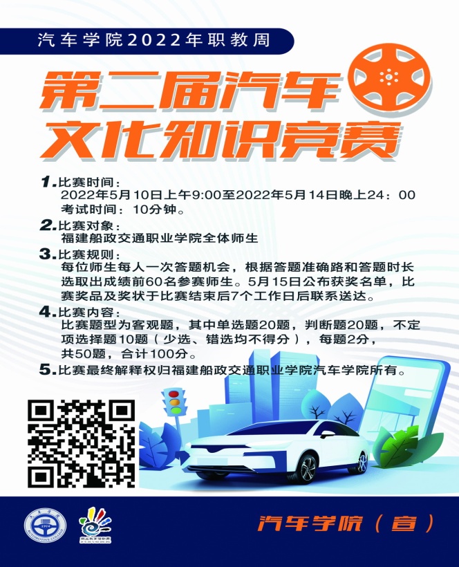 为弘扬汽车文化,丰富大学生课余文化活动,推动校园及社会汽车文化的发展。在2022年职业教育周活动之际,5月10日-14日汽车学院特开展第二届汽车文化知识竞赛,给广大师生提供交流学习的机会。