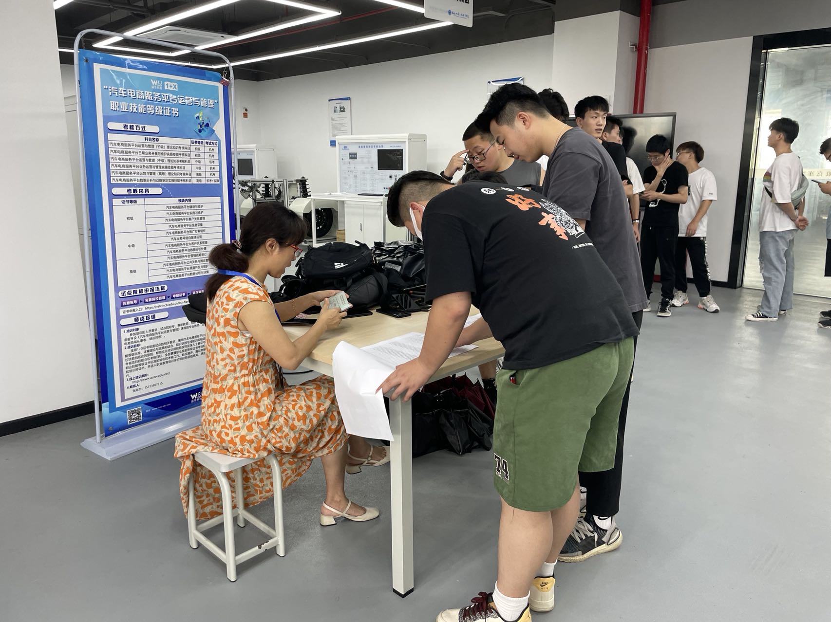 为贯彻落实教育部《国家职业教育改革实施方案》,发挥“1+X”职业技能等级证书对学生职业技能学习和掌握的引领作用。汽车学院于6月19日在汽车智能网联实训中心成功举办1+X汽车电商服务平台运营与管理职业技能等级证书考试, 20级新能源汽车技术专业46名学生参加了本次考核并全部顺利通过。