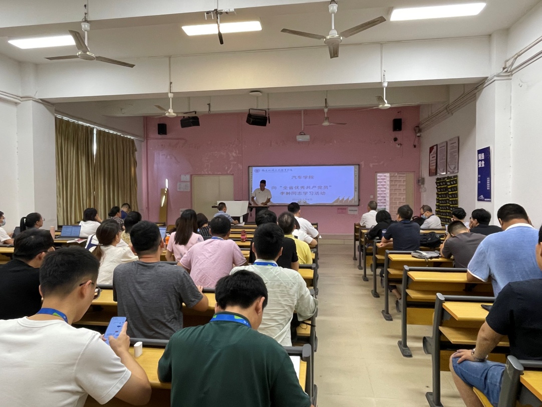 为表彰先进、弘扬正气、激励引导广大党员、教师奋进新征程、建功新时代,汽车学院于2022年7月6日在2号楼多媒体教室开展向“全省优秀共产党员”李翀同志学习活动,全体教职工参加会议,会议由蔡华锦书记主持。