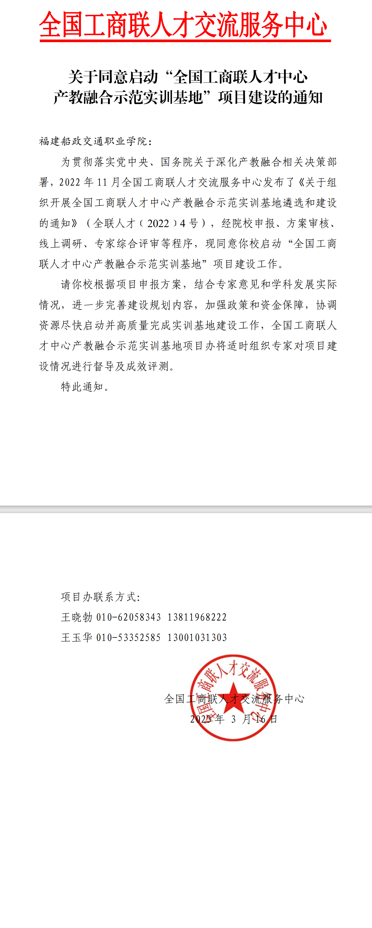 近日,全国工商联人才交流服务中心下发《关于同意启动“全国工商联人才中心产教融合示范实训基地”项目建设的通知》文件,我院成功入选首批“全国工商联人才中心产教融合示范实训基地”。