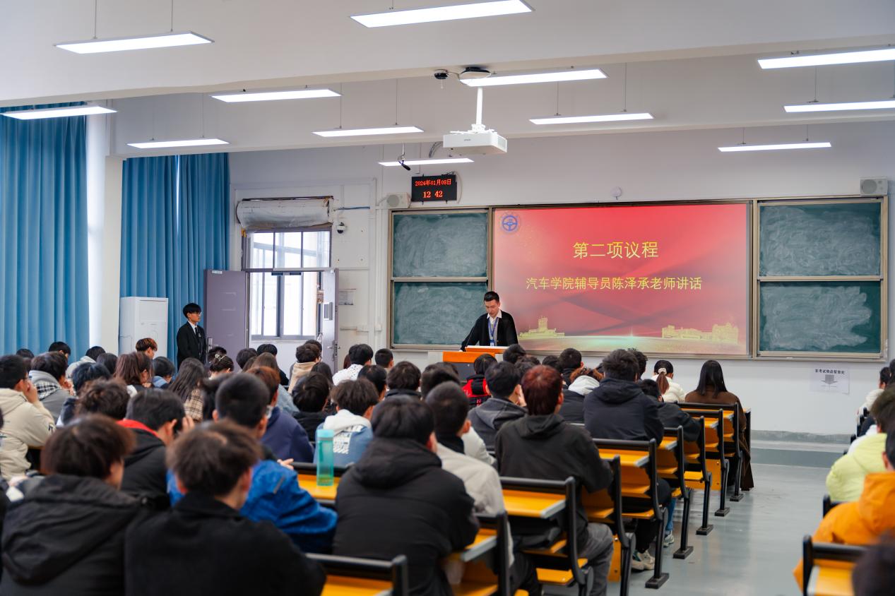 大会伊始,由汽车学院学生宿舍管理专项负责人陈泽承老师致辞,他对过去一个月来辛勤付出垒筑起的学院文明宿舍新高度的同学致以诚挚的谢意。艰难困苦,玉汝于成,他强调汽车学院能够获得校级文明宿舍建设月“最佳组织单位”,是全体师生同心同向、众志成城、用心血和汗水浇灌出的荣誉之花。同时他对在场的同学提出殷切期望,希望大家拿出“翻篇归零,乘势而上”的奋进姿态,摒弃“刀枪入库,马放南山”的懈怠心理,牢固树立创建文明宿舍只有起点没有终点的意识,以点带面,勠力同心,持续擦亮这块金字招牌,不断巩固并扩大已有的文明宿舍创建成果。
