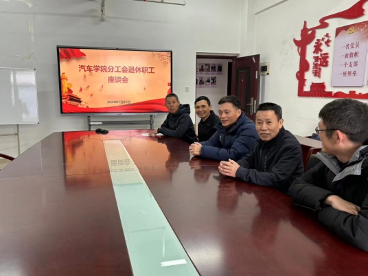 2024年1月25日上午,汽车学院在925会议室召开退休教师座谈会,欢送汽车实训实训中心许绍炎、陈建钊两位教师光荣退休。汽车学院党总支书记蔡华锦、副院长汤振周、吴腾飞主任出席座谈会,相关教师、实验员参加座谈会。座谈会由汤振周副院长主持。