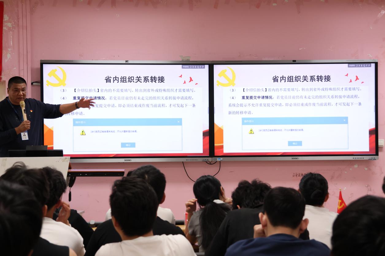 汽车学院党总支科级组织员何杰老师就毕业生党员党组织关系和党员档案转接进行现场培训,他强调,毕业生党员要高度重视组织关系和党员档案转接工作,及时准确地完成党组织关系和党员档案转接。