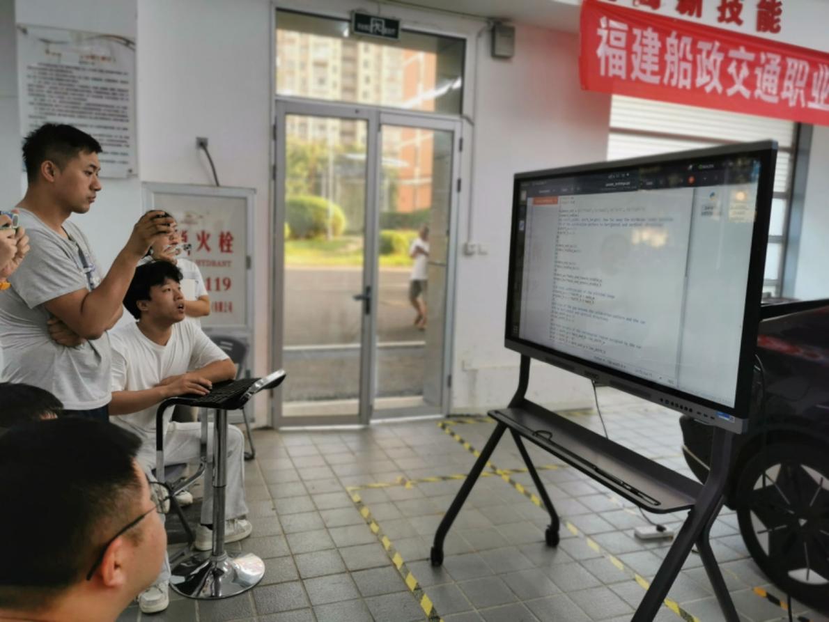 在校期间,汽车学院智能网联汽车技术竞赛团队的詹华老师、梁霖锋老师以及竞赛集训学生们详细介绍了近年来学校在智能网联汽车技术研发、竞赛组织及人才培养方面的成果与经验。特别是针对全国职业院校技能大赛智能网联汽车技术赛项,我校教师分享了备赛策略、技术难点攻克方法及团队协作经验,为新疆教师提供了宝贵的参考。双方就智能网联汽车的环境感知传感器的安装及标定、多传感器融合技术、车联网通信技术等技术展开了深入交流。