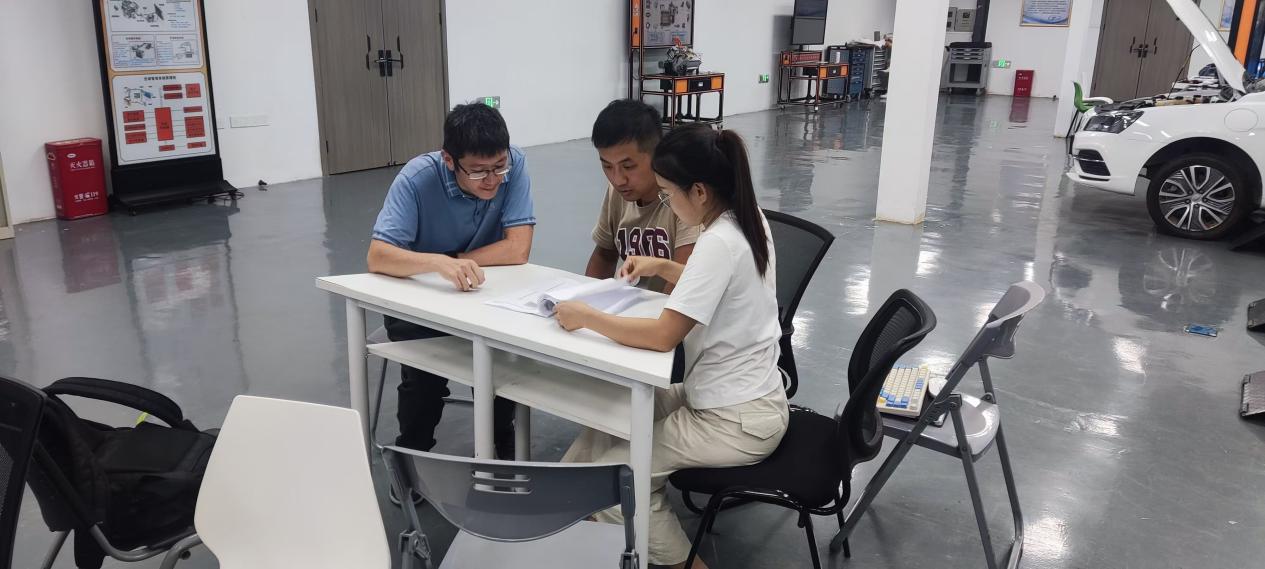 汽车学院黄知秋老师及汽车故障检修教师团队指导昌吉职业技术学院教师进行了新能源汽车技术竞赛的教学和实操演练。新疆教师团的成员们纷纷表示,这次交流不仅开阔了视野,更激发了他们对新能源及智能网联汽车教育的热情与信心,期待未来能有更多合作机会。