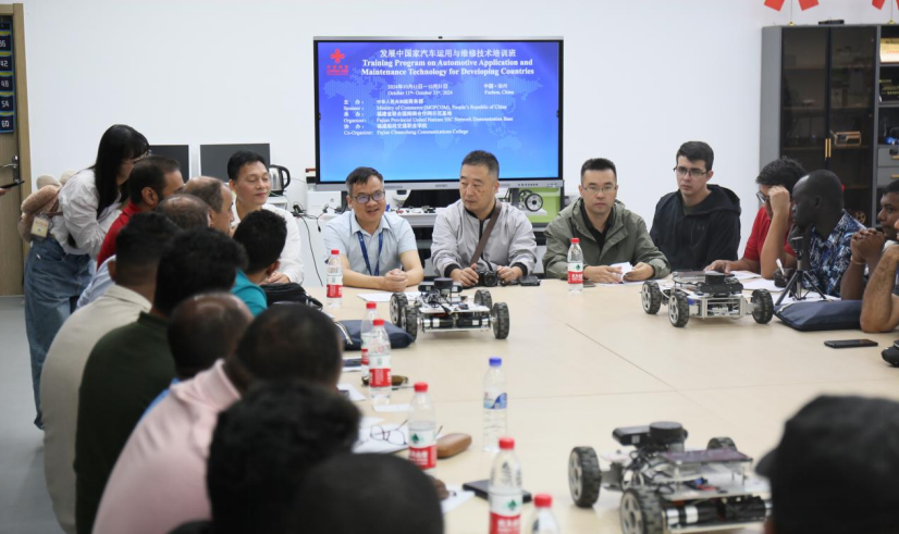 近日,我院协办由国际发展合作署与商务部下达、福建省联合国南合作网示范基地承办的发展中国家汽车运用与维修技术培训班,来自泰国、埃及、毛里求斯、巴拉圭、南苏丹、格林达纳等国的29名友人来校学习。10月24日,学院党委书记陈宜大来到智能网联汽车实训中心,同正在学习的外籍友人们座谈,现场询问了此次培训班的课程安排,关心了学员的培训、生活情况。