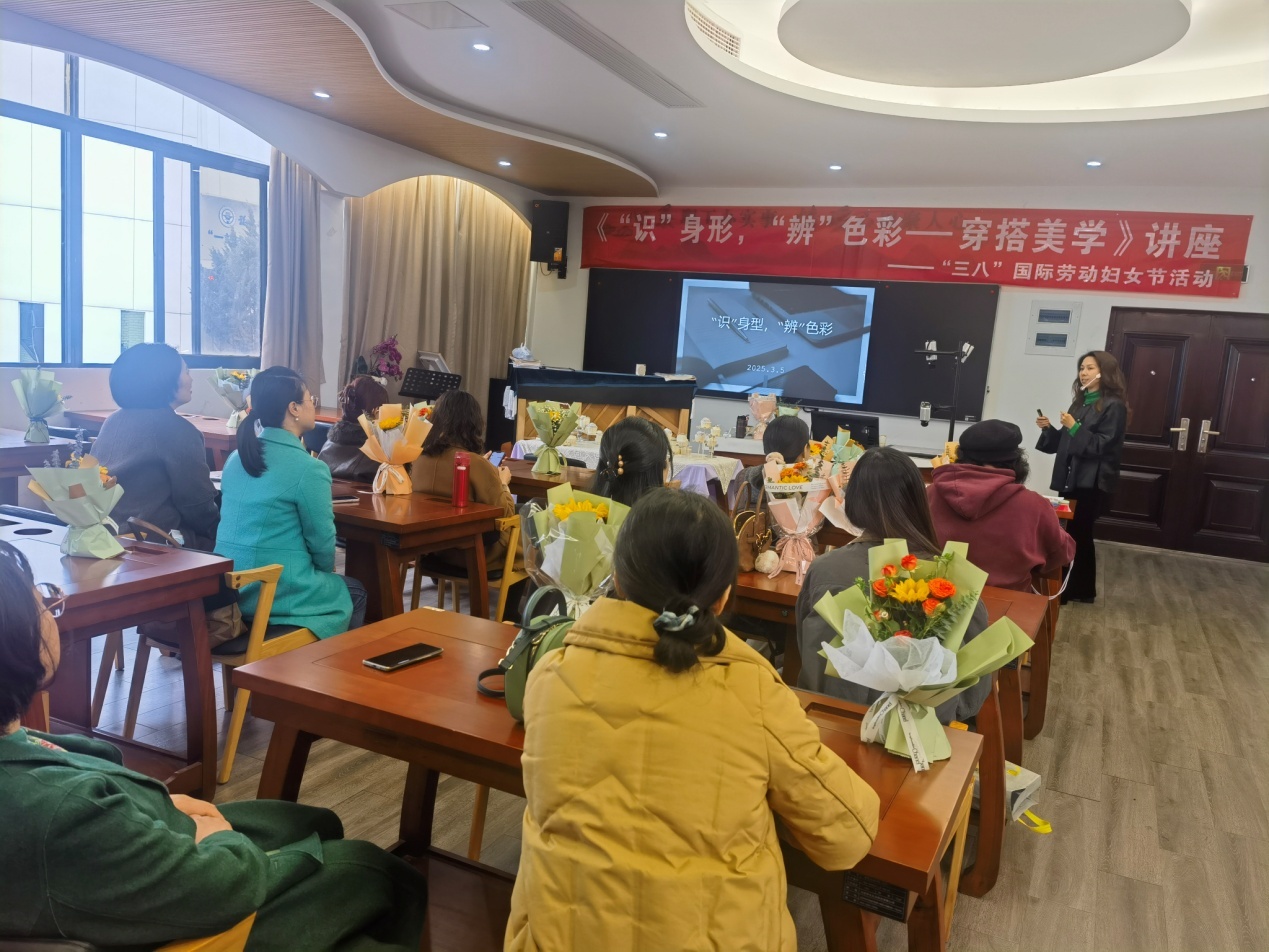为庆祝“三八”国际妇女节,为丰富我院女教职工的工作和业余生活,使广大女教职工过上一个健康、和谐、快乐的“三八”妇女节,提升女教职工的幸福感和归属感,增强团队凝聚力,由学院工会牵头,汽车学院分工会于2025年3月5日组织开展了《“ 识 ”身形,“辨”色彩-穿搭美学》讲座活动。活动以“关爱女性,穿搭美学”为主题,吸引了广大女性职工的积极参与。