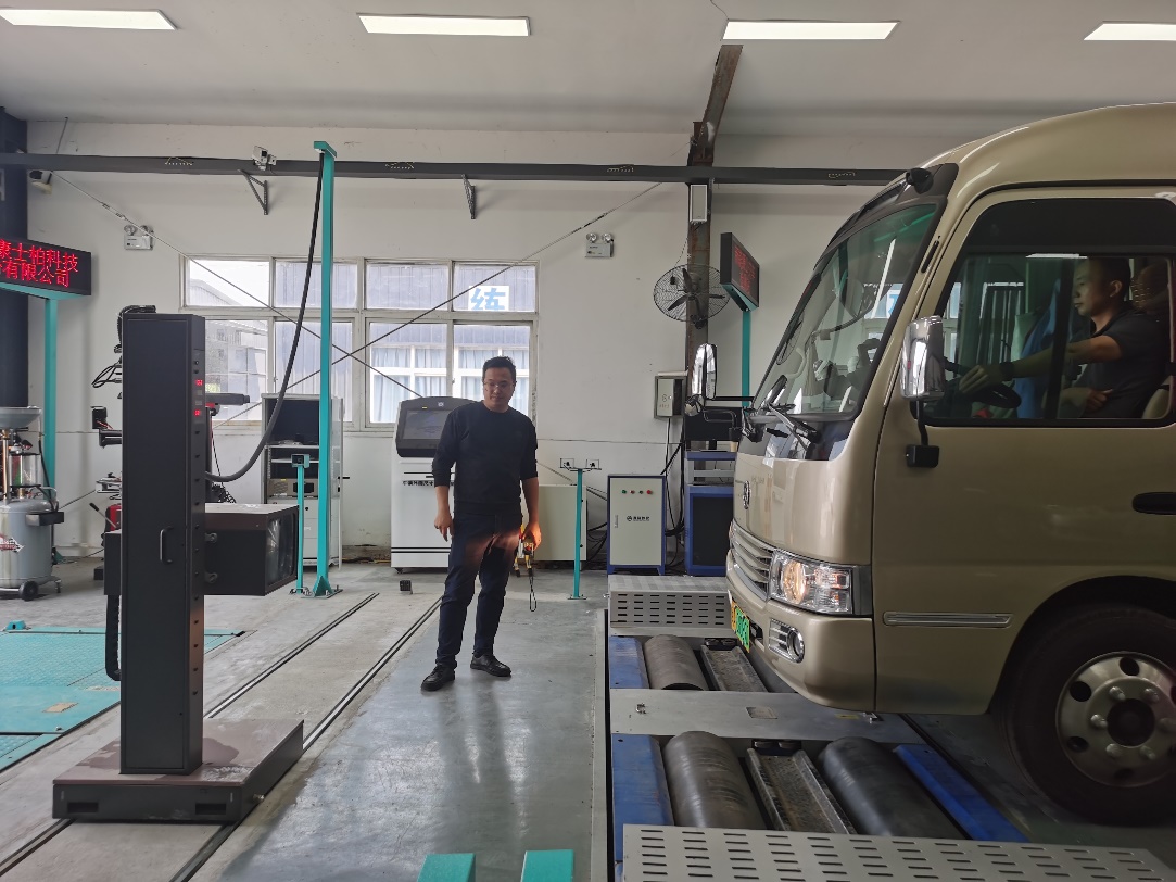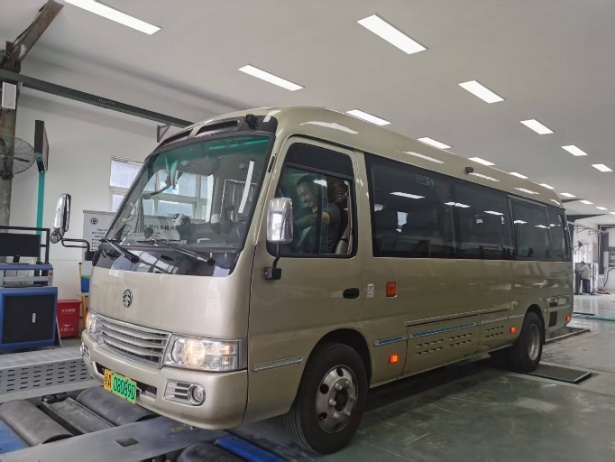 检测团队依托新能源公交车检测线,综合运用新能源汽车整车安全检验装备、电安全检验装备、加载制动检测台、轮重检测台、底盘间隙仪、前照灯检测仪及外廓尺寸测量仪等先进设备,对车辆展开全方位技术诊断。