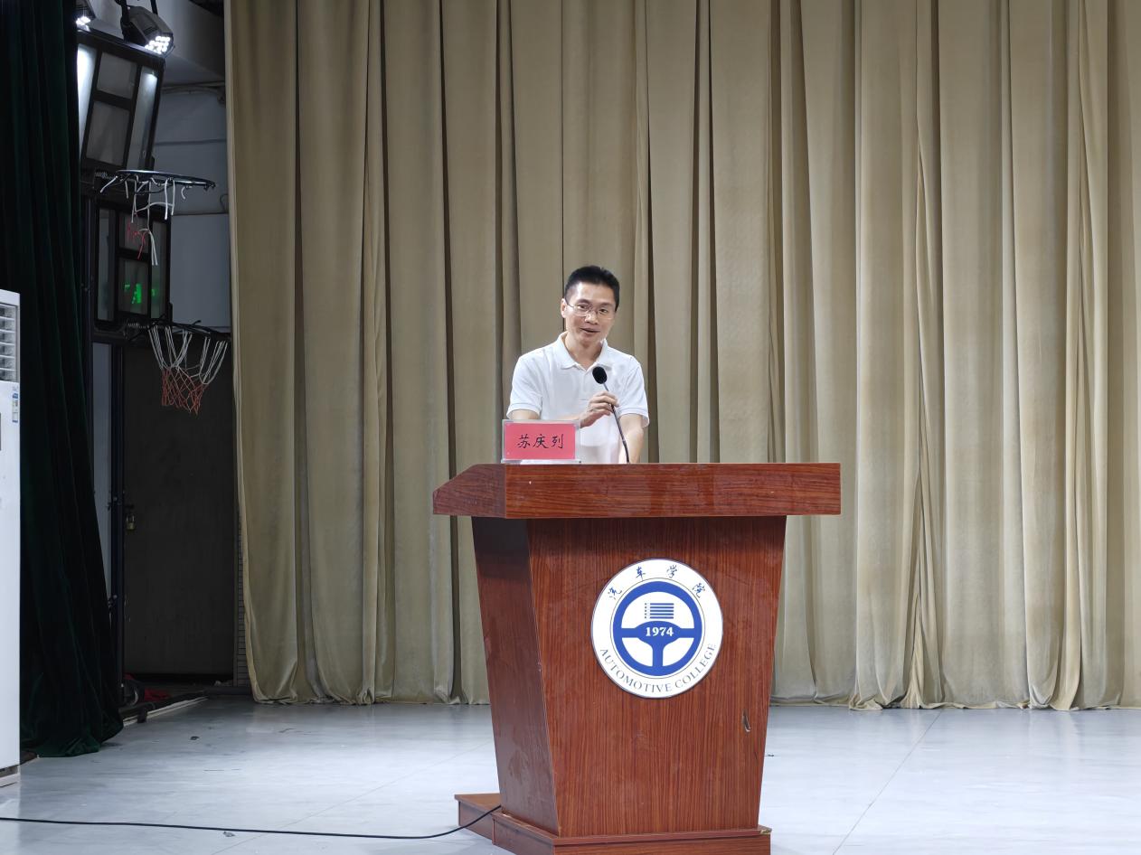 伴随着庄严的国歌声,开学典礼正式拉开帷幕。汽车学院院长苏庆列首先发表讲话,他对新生们的到来表示热烈欢迎,向大家介绍了汽车学院的发展历程、专业特色以及在汽车领域取得的成就。苏院长强调,汽车行业正处于快速发展的新时代,希望新生们能珍惜大学时光,扎实学好专业知识,培养创新思维和实践能力,为未来投身汽车事业做好充分准备,在汽车领域绽放光彩。