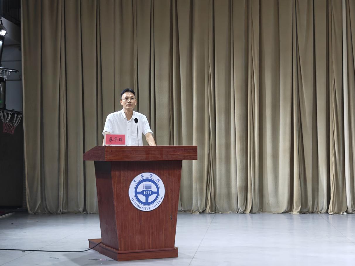 最后,汽车学院党总支书记蔡华锦讲话。蔡书记从思想引领、品德修养等方面对新生提出了要求和期望,希望大家在大学期间,不仅要提升专业素养,更要培养良好的道德品质,成长为德才兼备的汽车专业人才。