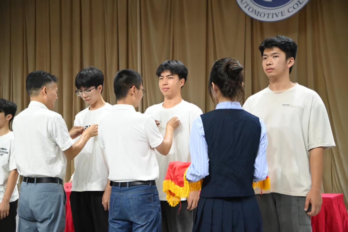 宣誓完毕,学院领导为十八位班级代表授予并佩戴校徽。当校徽佩戴在胸前的那一刻,新生们脸上洋溢着自豪与喜悦,这不仅是一种身份的象征,更是一份沉甸甸的责任,激励着他们在今后的学习生活中,以校徽为荣耀,以学院为骄傲,不断奋进。