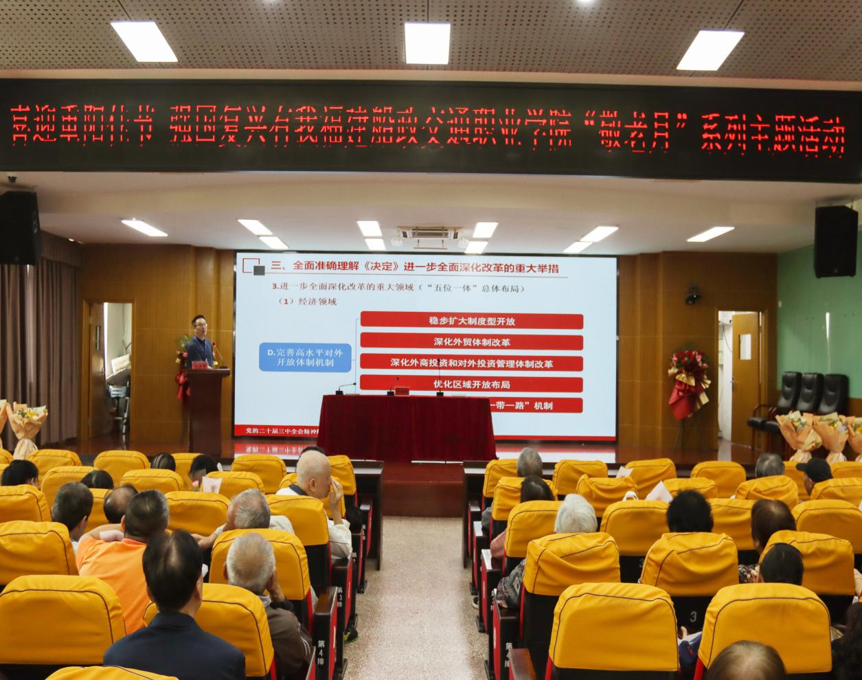 离退休党总支书记刘勇峰同志围绕党的二十届三中全会的时代背景与重要意义、习近平总书记在大会的重要讲话精神及《中共中央关于进一步全面深化改革、推进中国式现代化的决定》文件精神进行了深入浅出的解读分析,强调将学习宣传贯彻党的二十届三中全会精神和教育大会精神转化为推动学校高质量发展的强大动力,同冲刺“十四五”、谋划“十五五”相结合,以高度的责任感、使命感、紧迫感,探索好教育科技人才一体化推进的“船政模式”,当好科教兴国战略中的“排头兵”。
