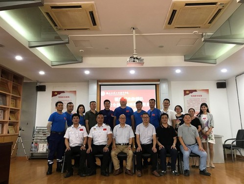 2020年6月28日上午10点,福建船政交通职业学院安全技术与管理专业群与福建曙光救援中心举行共建签约仪式。福建省曙光救援中心党委书记翁建斌,福建省曙光救援中心总队长陈斌、副总队长杨榕生,福建省曙光救援中心仓山大队、鼓楼大队、台江大队、晋安大队代表参加签约(揭牌)仪式。安全技术与环境工程系陈明仙副主任(主持工作)、陈榕副主任及安全技术与管理专业、救援技术专业教师出席仪式。