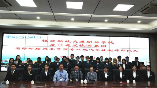 2019年5月5日下午,航海技术系在北区1号楼6楼会议室举行国际邮轮乘务管理专业现代学徒制拜师仪式。“一拜师傅勤栽培,二拜师傅传技艺,三拜师傅承师恩。”本次拜师仪式是现代学徒制试点的重要环节,通过拜师仪式明确师徒关系、双方职责,为今后开展人才精准培养打好基础。学院副院长高汝武、厦门建发旅游集团人事总监李桃、航海技术系主任、邮轮乘务管理专业教师及2018级国际邮轮乘务管理专业21名学生参加了拜师仪式。