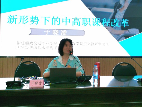 于晓凌老师以目前社会热议的“教学改革”为中心,开设了主题为“新形势下的中高职课程改革”的讲座,主要从中高职课程改革必然性、国内外课程改革现状、以点带面——以高职语文为例解析新形势下的中高职公共基础课程改革趋势这三个大方向,向在场教师介绍了中高职课程改革的必然性和重要性。讲座气氛活跃,引起在场教师们共鸣。