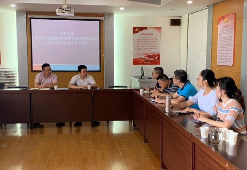 9 月 25 日上午,中科深兰(福建)环境科技有限责任公司领导一行莅临环境技术与管理专业群指导并洽谈校企合作事宜。安全与环境学院副院长陈明仙(主持工作)、副院长范自盛,环境工程技术教研室主任廖俊彦等接待了来宾。