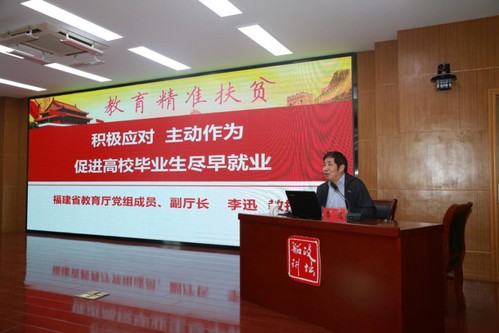 李迅强调,新时期新形势新要求,给大学生就业创业提供了机遇,也对我省的就业创业工作提出了更高的要求。各级高校要坚持以习近平新时代中国特色社会主义思想为统领,参悟透、领会准、运用好习近平总书记关于教育的重要论述,以更加昂扬的激情、更加饱满的热情、更加有效的作为,积极投身到就业创业指导服务工作中,支持大学生就业创业,助力大学生唱响更加嘹亮的就业之歌、创业之歌,为福建省高质量发展做出应有的贡献。
