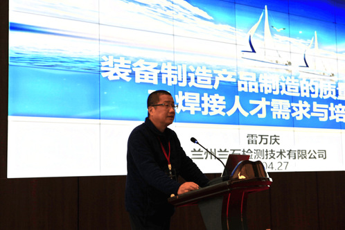 兰州兰石检测技术有限公司执行董事雷万庆进行主题发言,以装备制造产品制造的质量控制及焊接人才需求与培养为主题,分析了装备制造领域对焊接岗位人才需求及供给情况,并向院校代表提出,应高度关注装备制造企业对焊接技术人才需求的变化,不断探索、持续改进,适应新经济的发展,力争在职业院校摇篮里,培养出一批既具备扎实专业基础理论知识,又具备工程实践和管理能力的复合型焊接技术人才。