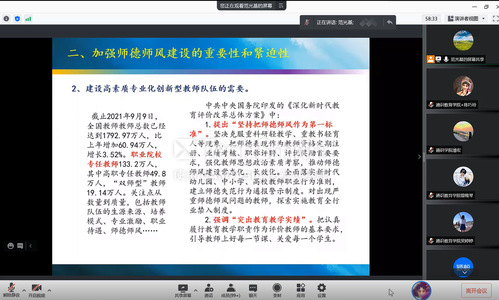 为进一步加强学院师德师风建设,实施“五个一”师德师风建设机制,通识教育学院分别于9月22日、26日下午邀请校外专家在线开展师德师风专题培训,通识教育学院全体教师和各二级学院部分教师参加培训,两场培训由通识教育学院副院长金晶晶主持。