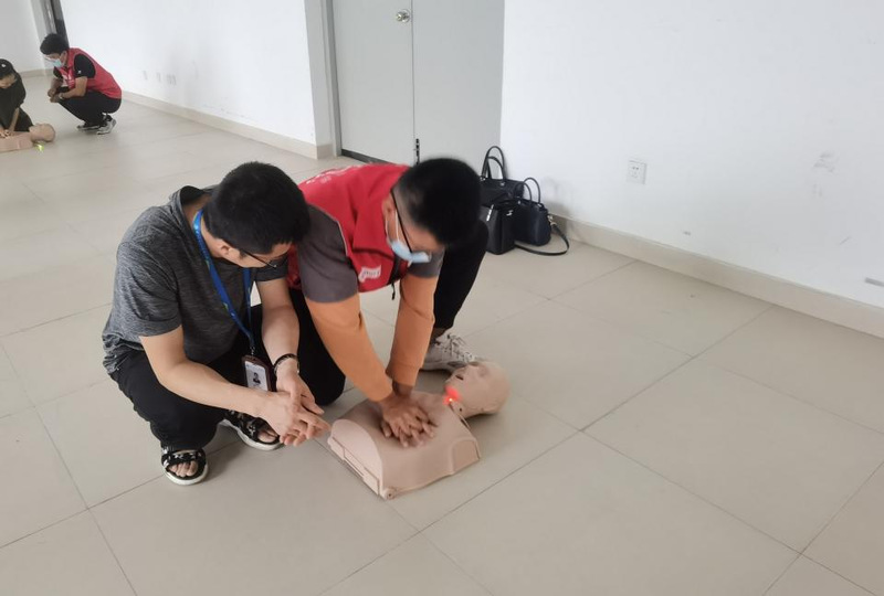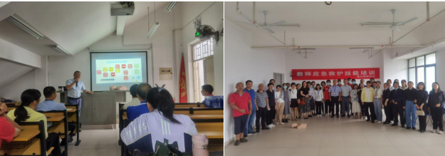 此次培训分为理论知识学习和现场实操训练。在理论知识学习环节,专家对应急救护的法律法规、判断救护条件、心肺复苏方法等内容进行了详细的讲解和分析。在实操模拟环节,教职工们积极参与训练,将基础知识转化为模拟现场救护行为。专家现场指导每位教师进行实际操作,有效提高了教师们的运动损伤的急救技能。