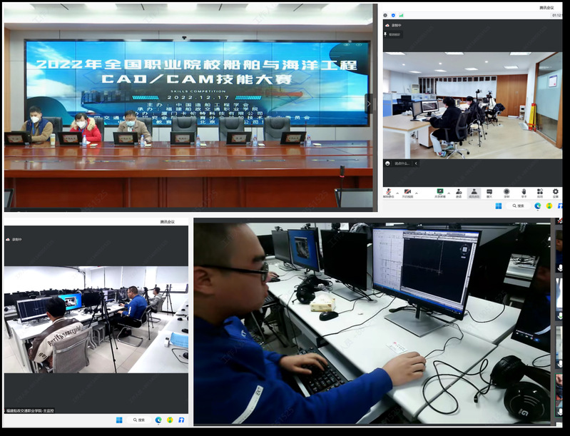 为提高专业技能水平,促进院校学生之间学习交流,由中国造船工程学会主办,我院航海学院承办的2022年全国职业院校船舶与海洋工程CAD/CAM 技能大赛于12月17日上午正式拉开帷幕,此次比赛共吸引13所国内知名涉船类职业院校参赛。比赛采用线上比赛方式,通过腾讯会议平台及www.currentcad.com(卡伦特在线平台)进行。