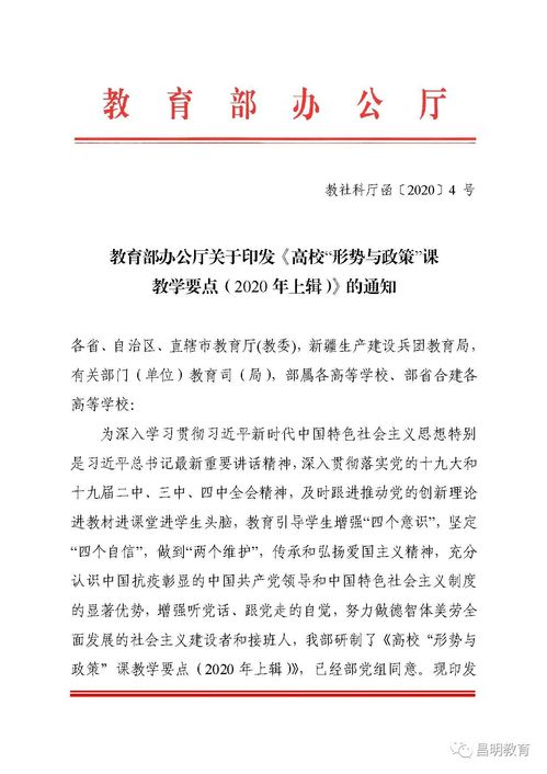 教育部办公厅关于印发《高校“形势与政策”课 教学要点(2020 年上辑)》的通知