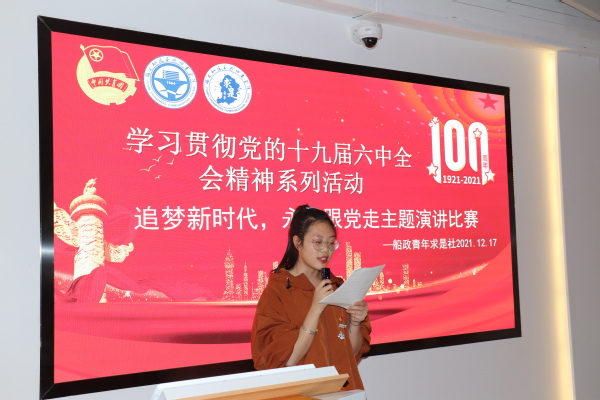 为了深入学习贯彻落实党的十九届六中全会精神,纪念学院办学155周年,充分展现船政学子爱党爱国的良好精神风貌,在马克思主义学院指导下,船政青年求是社于12月17日下午18:30在北区图书馆3楼党建馆教室举办了学习贯彻党的十九届六中全会精神系列活动之“追梦新时代,永远跟党走”演讲比赛。本次比赛由马克思主义学院马锦辉老师、林桂梅老师、黄晋京老师担任评委,140余名学生观看了比赛。