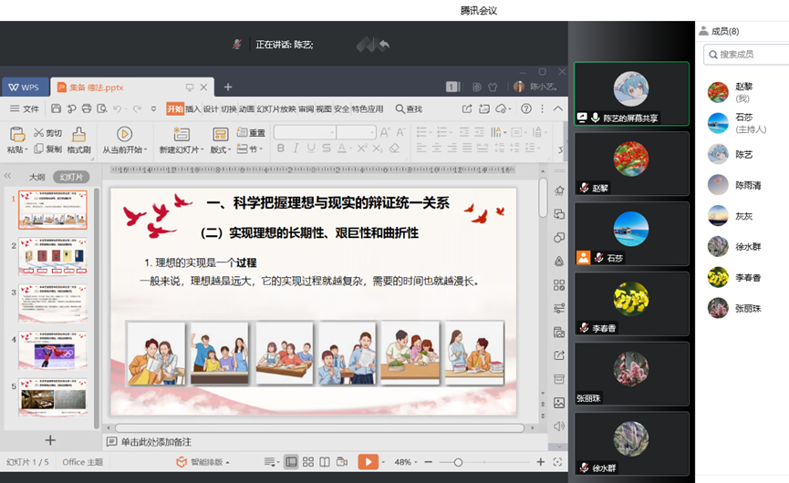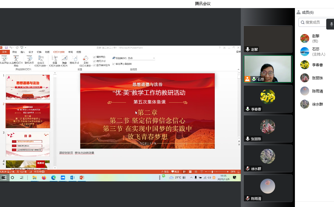 为进一步提升教学质量,推进思政课课程建设,马克思主义学院思想道德与法治教研室于11月9日晚在线上进行了本学期的第5次集体备课。