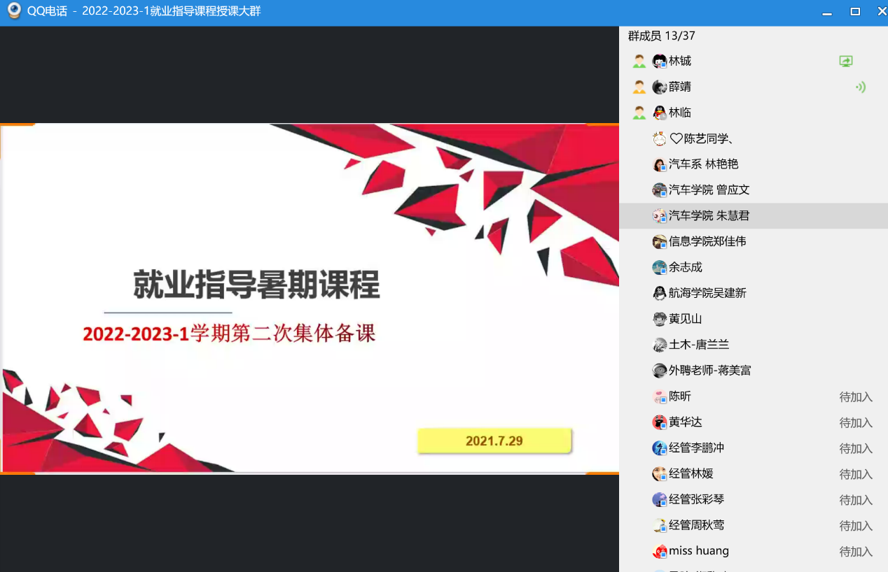 为深入推进《就业指导》课程建设,帮扶毕业生做好生涯规划,提高就业意识和求职能力,7月29日,就业创业指导教研室组织2020级《就业指导》课程全体任课教师,开展了线上集体备课教研活动