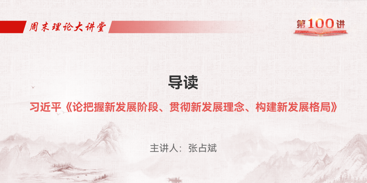 2022年8月5日下午,马克思主义学院组织全体教师学习周末理论大讲堂第100讲。第十三届全国政协委员、中央党校(国家行政学院)马克思主义学院院长、教授、博士生导师张占斌从新发展阶段:开启中华民族伟大复兴新征程、新发展理念:引领高质量发展和高品质生活、新发展格局:构建相互促进的国内国际双循环和三个新发展:中国特色社会主义政治经济学的最新成果四个层面对习近平《论把握新发展阶段、贯彻新发展理念、构建新发展格局》为广大思政教师展开全面深刻的理论导读。