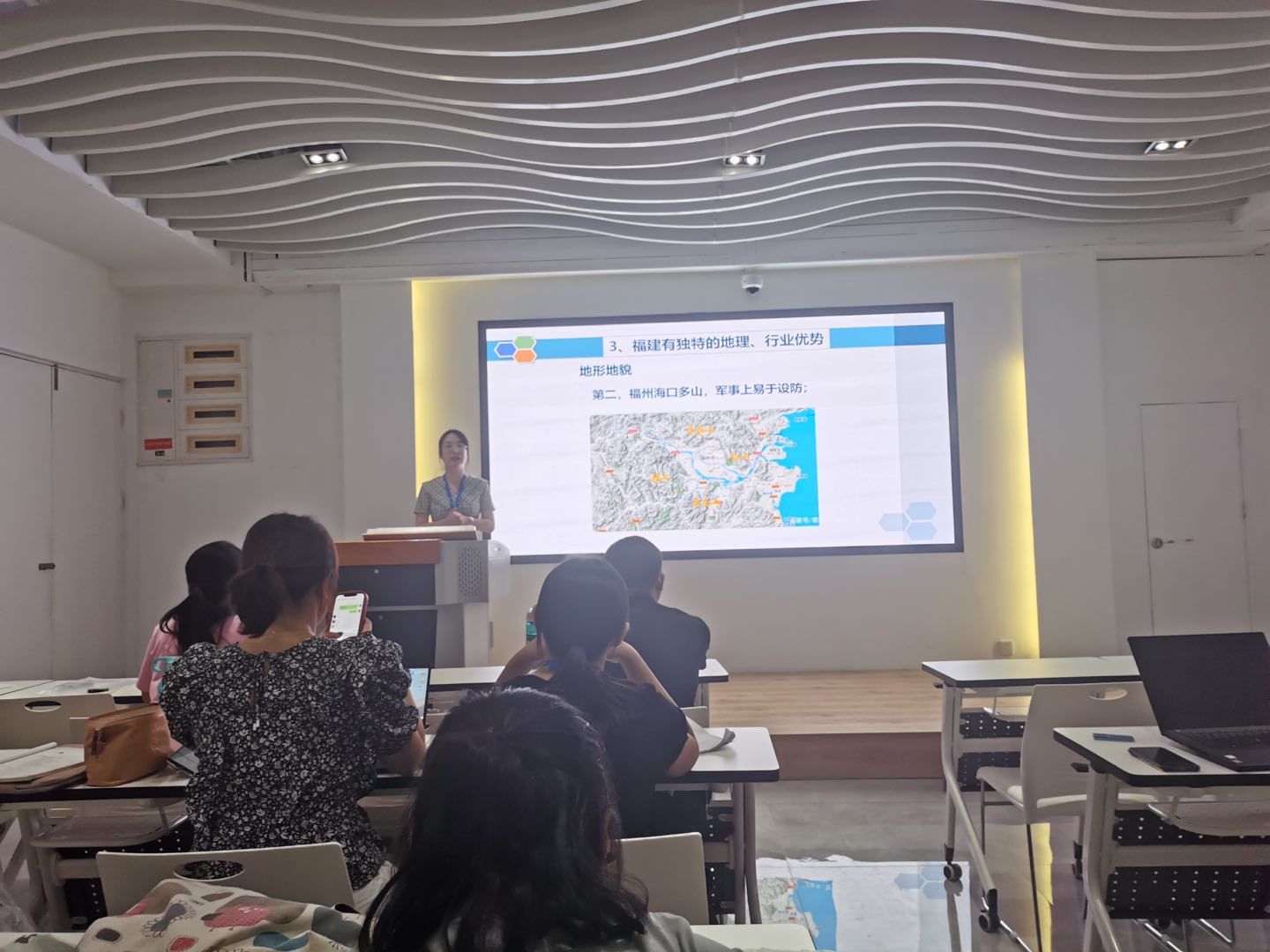随后,郭丽超老师选取了“船政选址马尾的原因”进行片段教学展示,通过对地理位置、资源利用等方面的分析,讲清了船政创办这么一项声势浩大的工程,为什么选在福建马尾的问题。