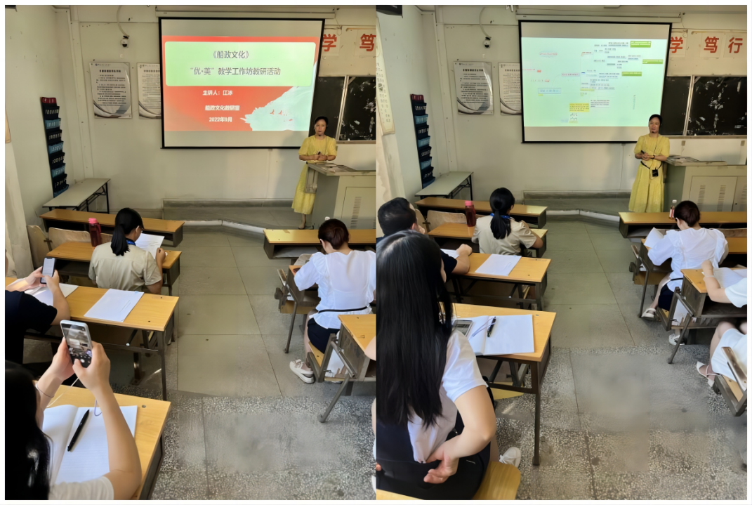 9月22日,马克思主义学院船政文化教研室全体专兼职教师在汽车系第一阶梯开展了“优·美”教学工作坊教研活动。本次教研的内容是《船政文化》课程第三讲,由江冰老师担任主讲。