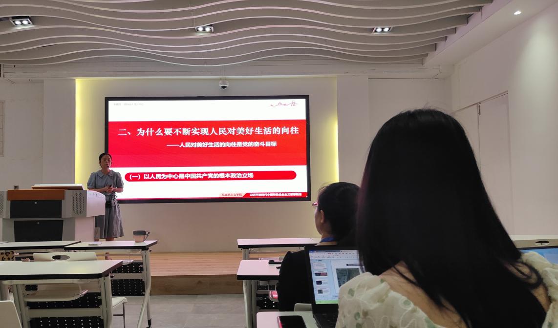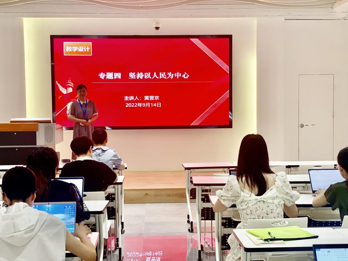 2022年9月14日,马克思主义学院“习近平新时代中国特色社会主义思想概论”教研室全体专兼职教师在图书馆三楼党建馆开展了“优·美”教学工作坊教研活动。本次教研的内容是本课程的“专题四 坚持以人民为中心”,由黄晋京老师担任主备课人。
