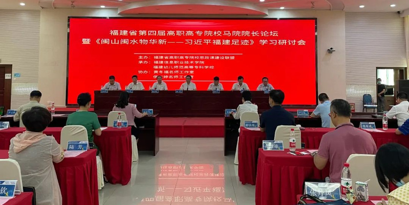 7月22日,福建省第四届高职高专院校马院院长论坛暨《闽山闽水物华新——习近平福建足迹》学习研讨会在福州召开。会议采取线上线下方式同步举行,线下会议在福建信息职业技术学院龙腰校区举办,线上会议通过腾讯会议直播。