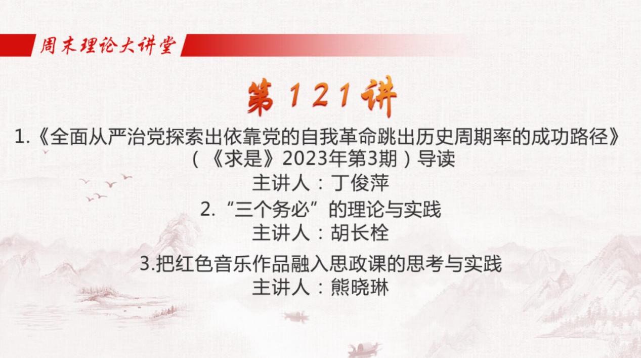 5月12日,由教育部主办,全国高校思想政治理论课教师网络集体备课平台承办的“周末理论大讲堂”第121讲开讲。马克思主义学院组织全体教师观看学习。