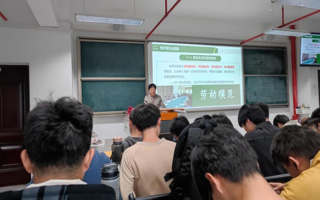 江晖老师在给2022级现代物流管理1、2班讲授“职业生活与劳动观念”