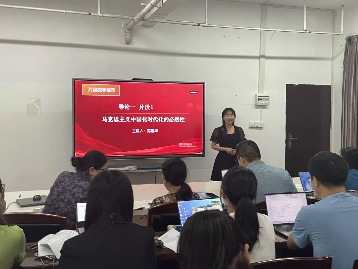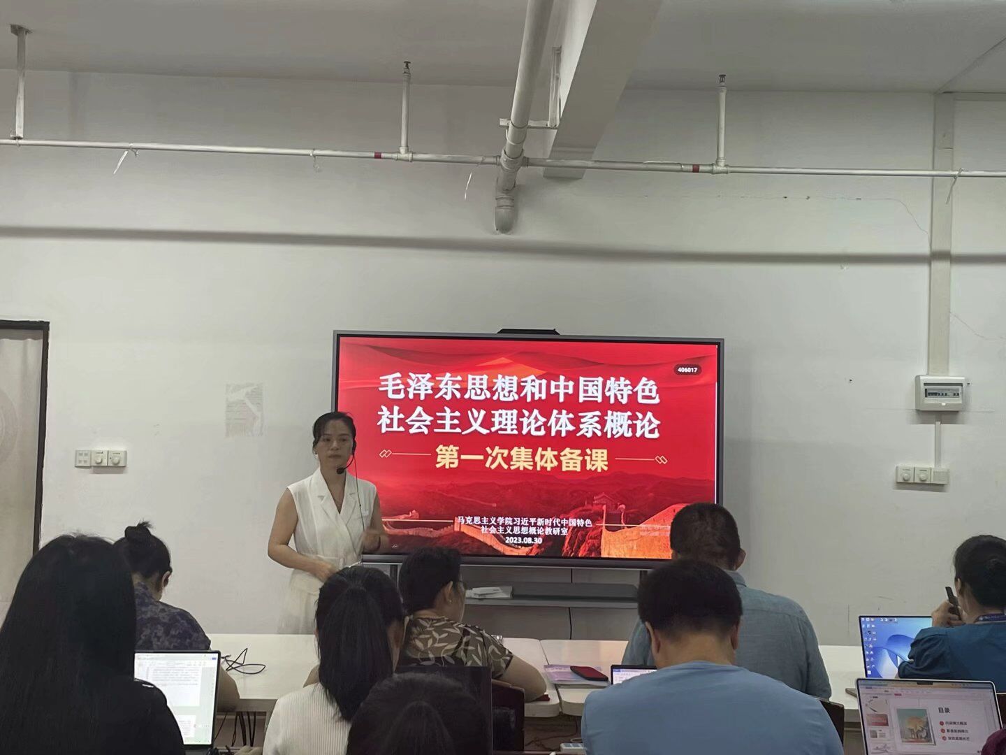 2023年8月30日,马克思主义学院“毛泽东思想和中国特色社会主义理论体系概论”教研室全体专兼职教师在图书馆11楼1101室开展了“优·美”教学工作坊教研活动。本次教研的内容是本课程的“导言 马克思主义中国化时代化的历史进程与理论成果”,由江冰老师担任主备课人。