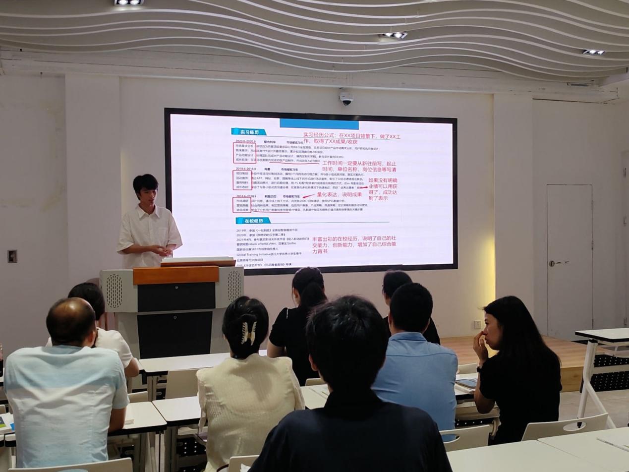 简历是求职过程中的敲门砖,优秀的简历能够很大程度地增加面试的机会。本次教研活动围绕《第四讲 求职设计》进行集体备课,深入探讨如何通过教学引导,帮助学生迅速掌握制作“金简历”的技巧,提高学生简历的“含金量”。集体备课会上,主备课教师林铖老师强调了简历的重要性,指出一份好的简历可以为求职者提供更多的机会和竞争优势。她详细讲解了简历制作的具体步骤和技巧,包括简历的结构、格式、内容、语言、排版等方面。她还通过真实案例分析指出学生在简历制作和面试过程中常见的问题,并提出改进应对措施,指出最好的简历应该具备简明扼要、重点突出、适度发挥、真实可信等特点。