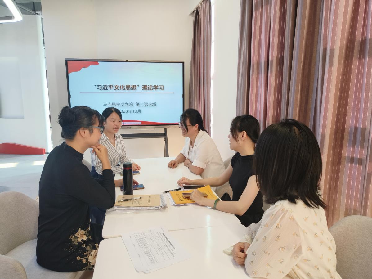 会上,支部成员结合教研和学习实际各自交流了学习感悟。大家一致认为,习近平文化思想的提出,进一步丰富了习近平新时代中国特色社会主义思想理论体系的内容,是新时期宣传思想政治工作的根本指南和重要遵循,意义十分重大。大家表示,要把习近平文化思想和习近平总书记系列重要讲话精神结合起来学,要把习近平文化思想与思想道德与法治课程的教学工作结合起来,充分利用专题学习、交流研讨、调查研究等形式,不断把学习引向深入。