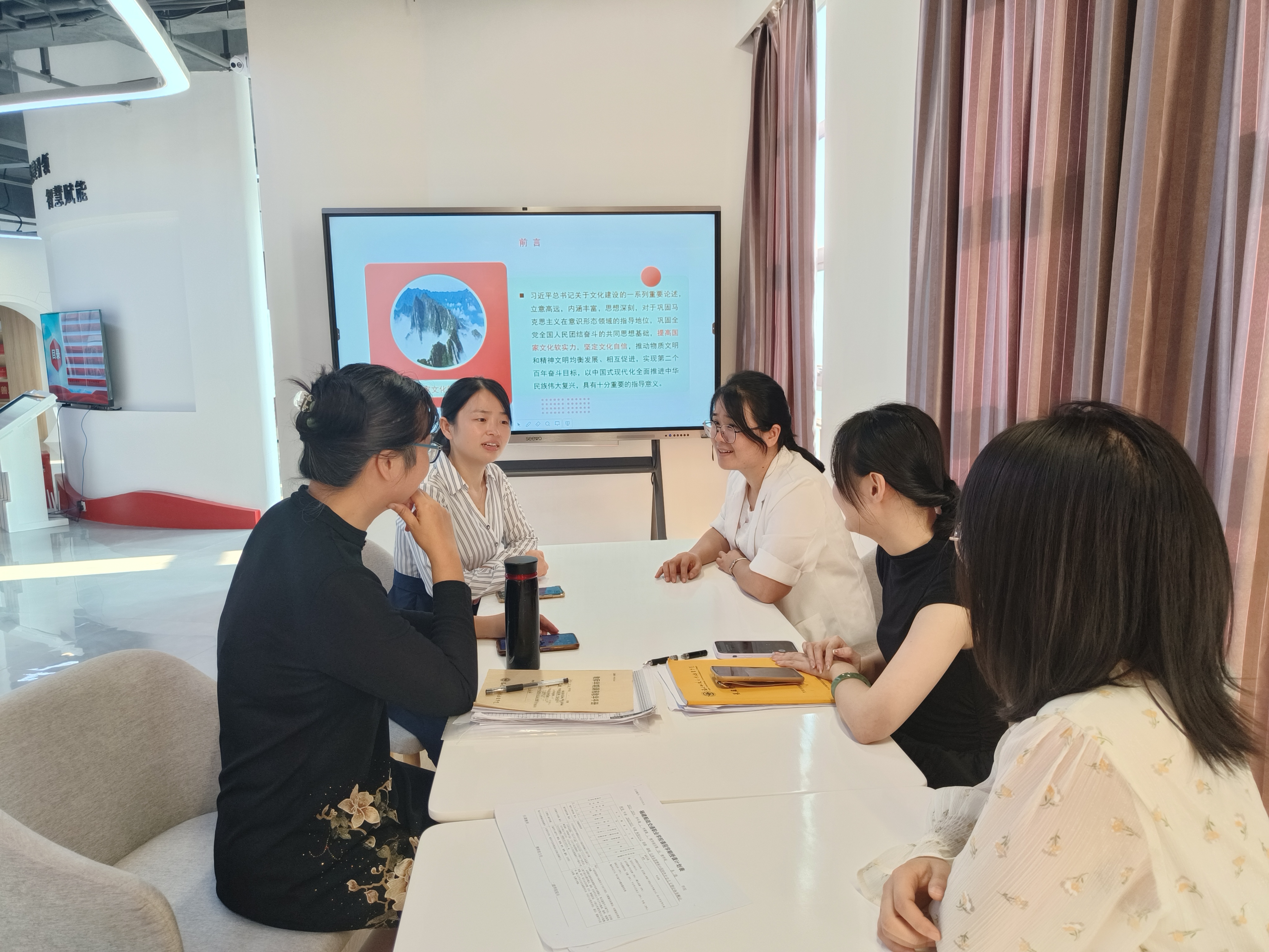最后,支部黄其连同志进行总结:作为思政教师,要深入学习贯彻习近平文化思想,不断加深对习近平文化思想的重要性的认识,注重全面系统学,将科学理论内化为锻造自我和推动工作的强大精神武器。同时,坚持理论联系实际,做到学以致用,将文化思想融入德法课程,在新的起点上继续推动文化繁荣、建设文化强国。