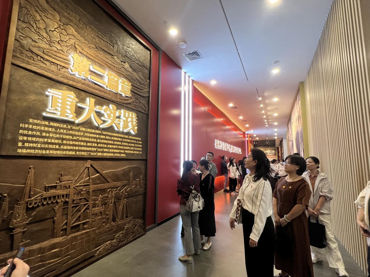 成就展从序厅气势恢宏的巨幅漆画《闽山闽水物华新》展开,以“3820”战略工程为主线,分“战略擘画、重大实践、赓续奋斗”三大篇章,全方位、多角度展现了“3820”战略工程实施30年来福州的发展历程和辉煌成就,充分反映了“3820”战略工程的科学性、前瞻性、系统性。在讲解员的引导下,大家沿着历史的轴线,在一张张感人的历史照片、一段段生动的视频影像、一件件珍贵的实物展品前,驻足观看、认真端详、细细品读,重温习近平总书记在福州工作期间开创的重要理念和重大实践,真切感受30年来福州的发展巨变,深入感悟习近平总书记高瞻远瞩的战略思维、锐意创新的改革思路、求真务实的工作作风和人民至上的执政理念,进一步增强“学思想、强党性、听党话、跟党走”的责任感和使命感。