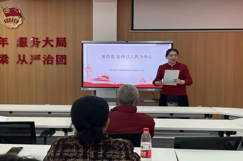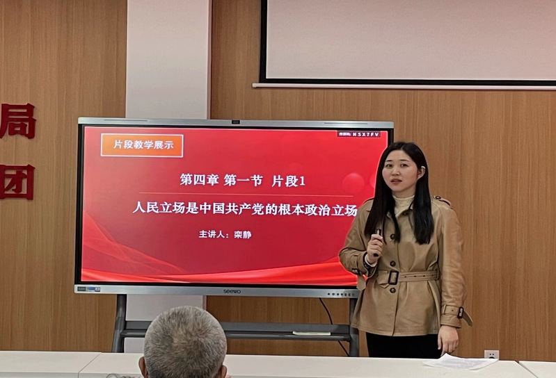 接着马克思主义学院栾静老师以《人民立场是中国共产党的根本政治立场》为题,围绕党的使命与初心、党与人民的血肉联系,以及热爱人民、尊重人民等三方面进行片段教学展示。