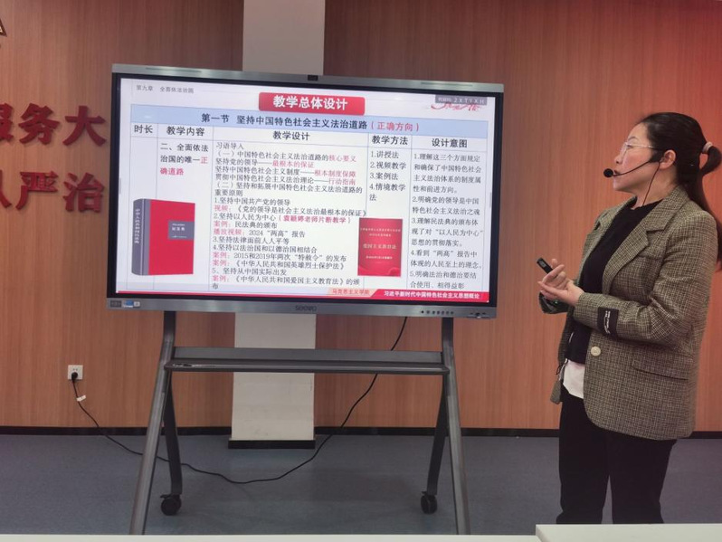 2024年3月29日,马克思主义学院习近平新时代中国特色社会主义思想概论教研室开展了本学期第十次思政课教师“大练兵”暨“优·美”教学工作坊集体备课活动。活动围绕本课程的第九章“全面依法治国 ”进行教学研讨。本次集体备课由刘丽萍老师担任主讲,袁颖婷老师做片段教学展示。
