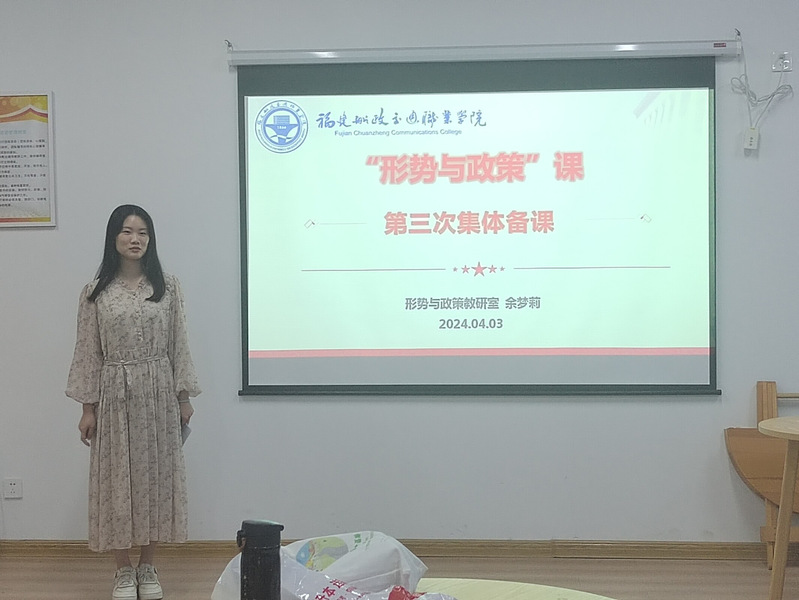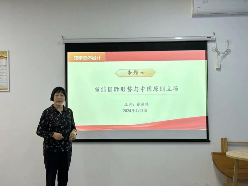 为更好地组织“形势与政策”课程教学,推动习近平新时代中国特色社会主义思想进教材、进课堂、进头脑,2024年4月3日,马克思主义学院形势与政策教研室开展了本学期第二次思政课教师“大练兵”暨“优·美”教学工作坊集体备课活动。活动围绕本课程的专题“当前国际形势与中国原则立场”进行教学研究。本次集体备课由张丽珠老师担任主讲,余梦莉老师做片段教学展示。